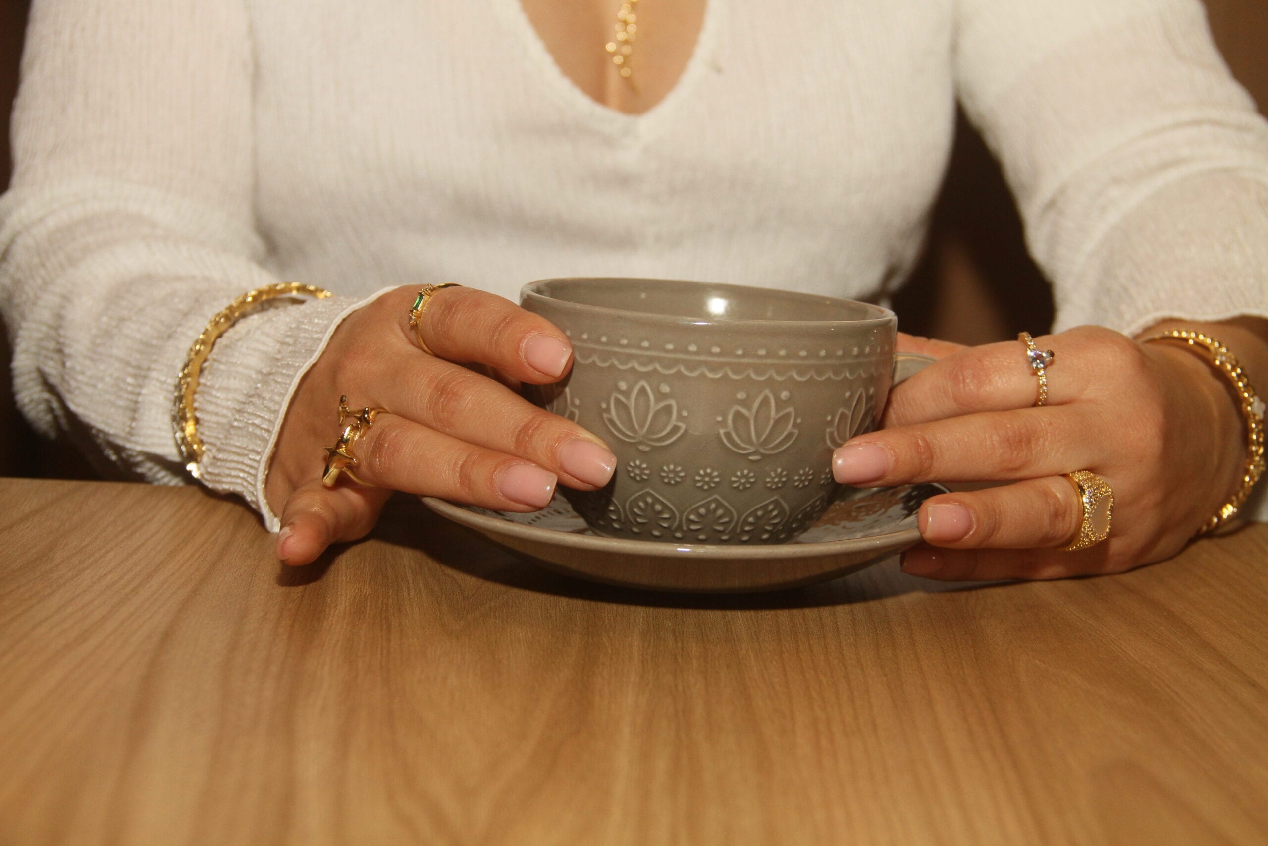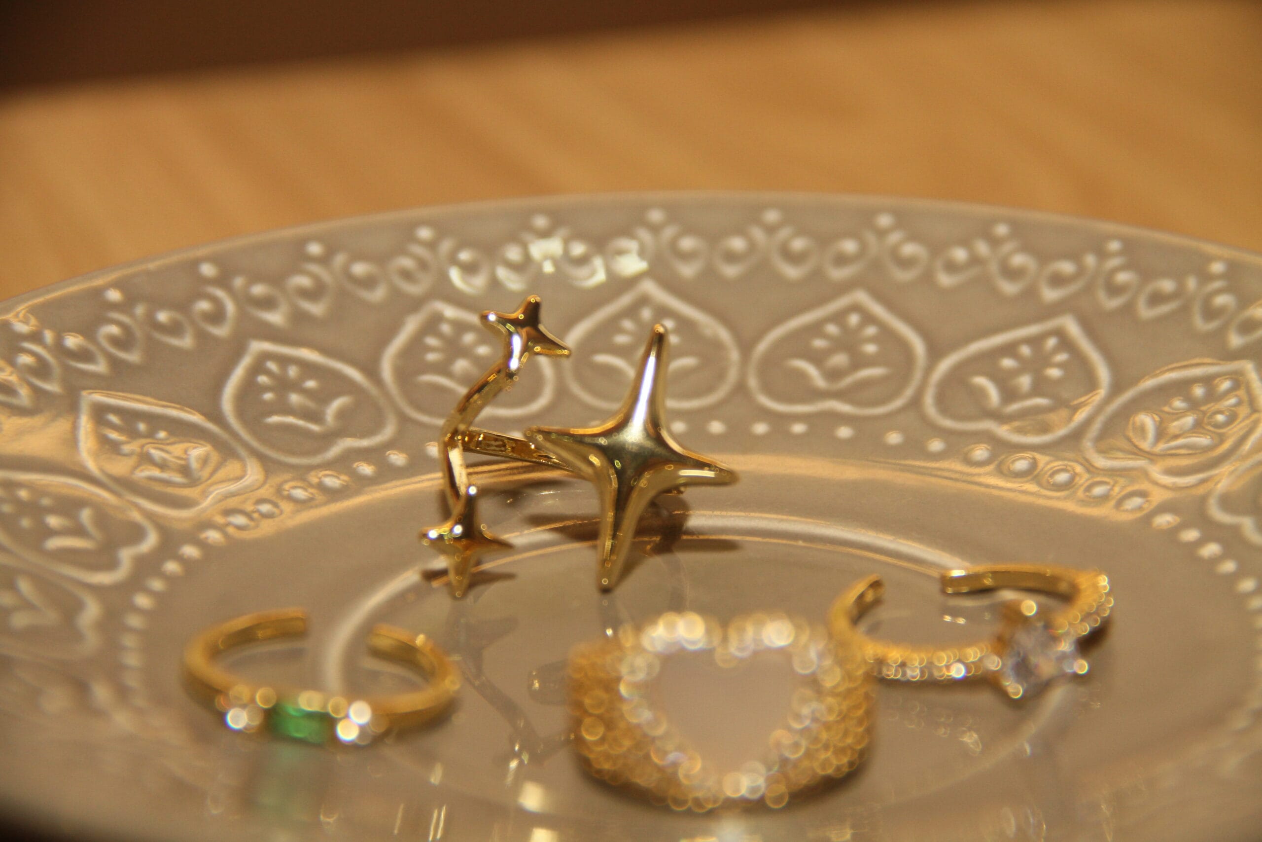 - Anillo estrella fabricado en rodio con baño de oro de 24 K
