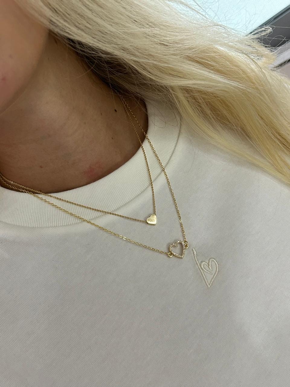 - Collar doble corazón edición especial en rodio con baño de oro 24K.