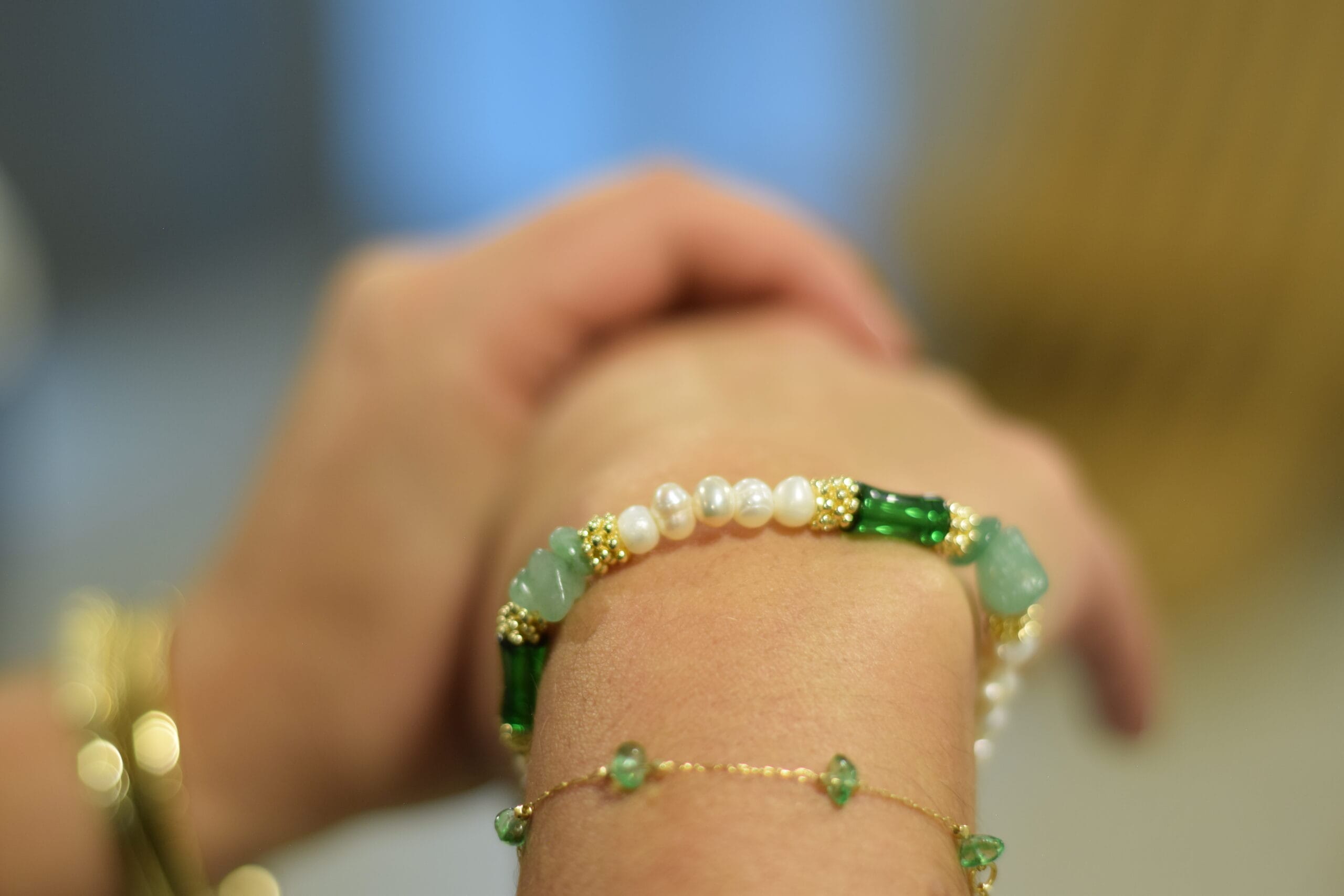 - Set de Pulseras apilables fabricadas a mano en rodio con baño de oro de 24 K