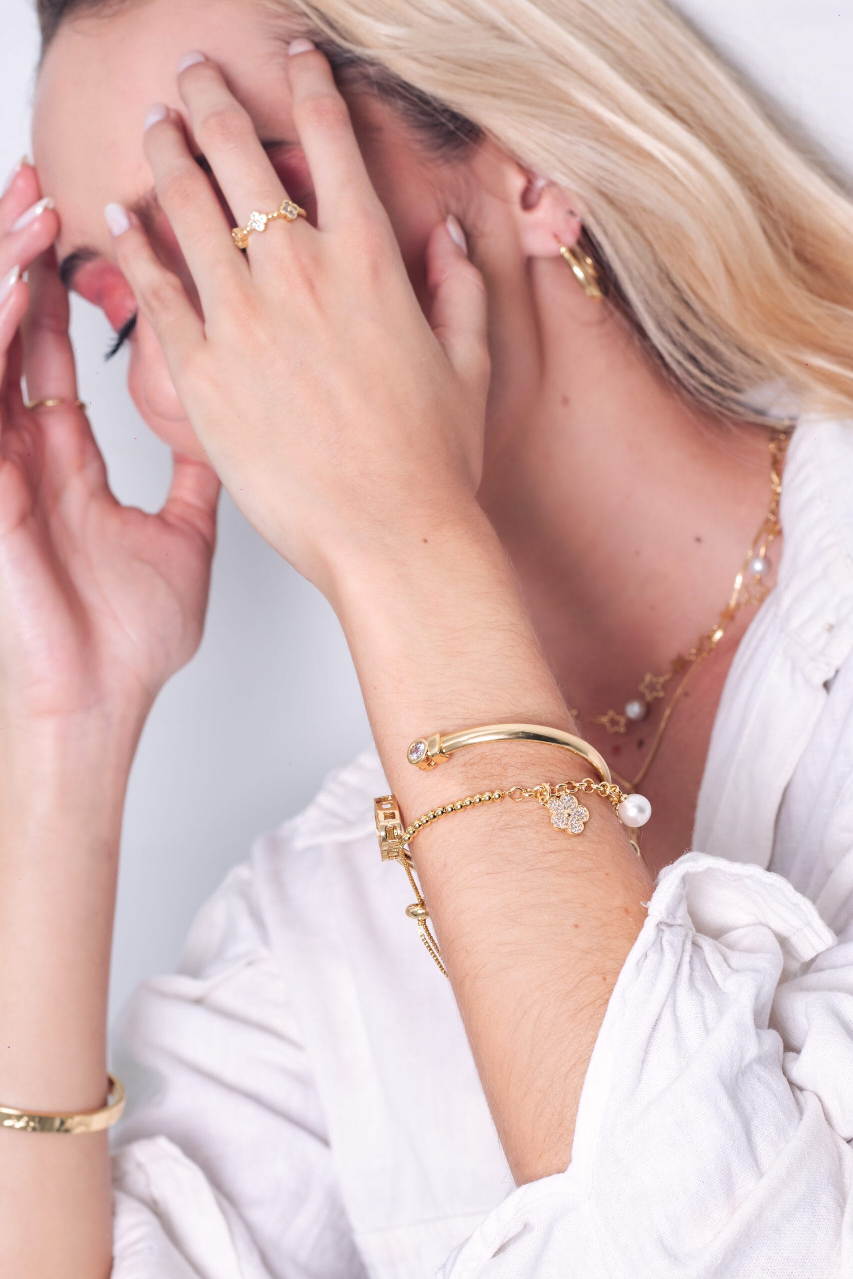 - Pulsera fabricada a mano en rodio con baño de oro de 24 K