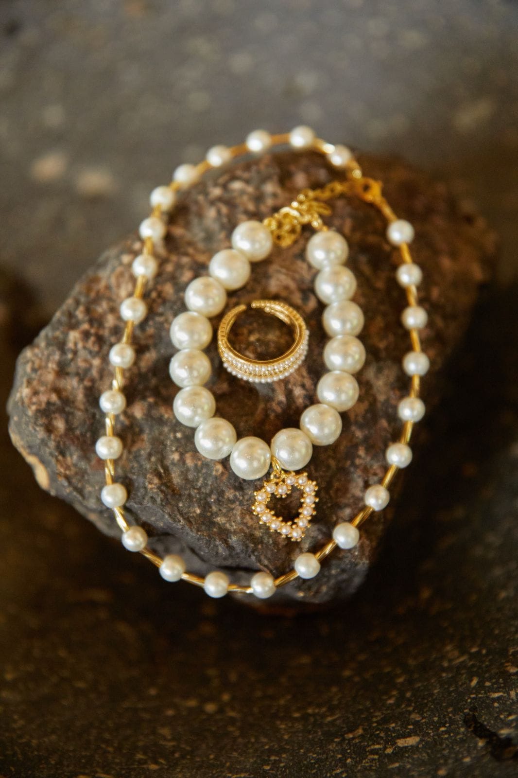 - Collar, pulsera y anillo fabricados a mano en rodio con baño de oro de 24 K